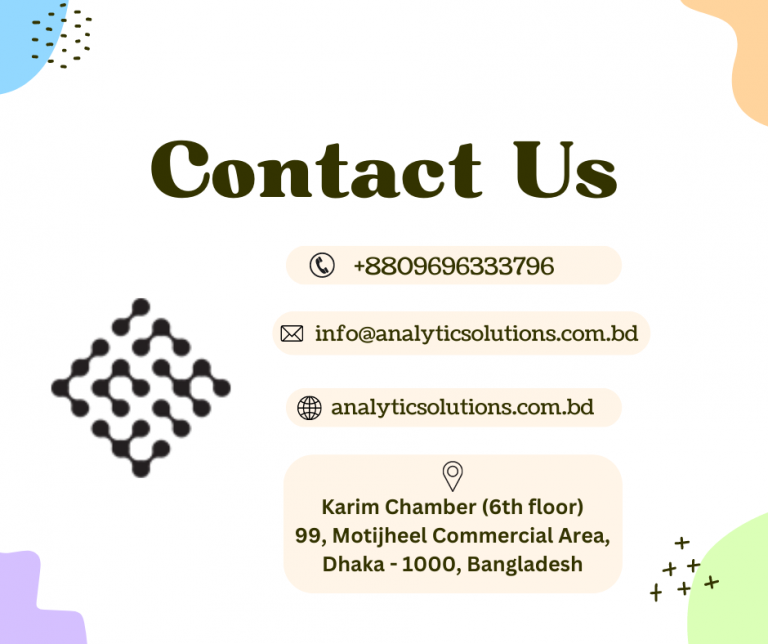 Analytic Solutions, Karim Chamber (6th floor) 99, Motijheel Commercial Area, Dhaka - 1000, Bangladesh. Phone : +8809696333796 E-mail : info@analyticsolutions.com.bd URL : www.analyticsolutions.com.bd Send us a message Please enable JavaScript in your browser to complete this form.Name *Email *Subject *Message *Send Away!